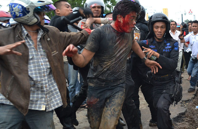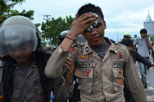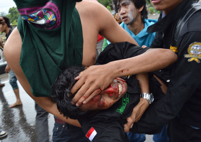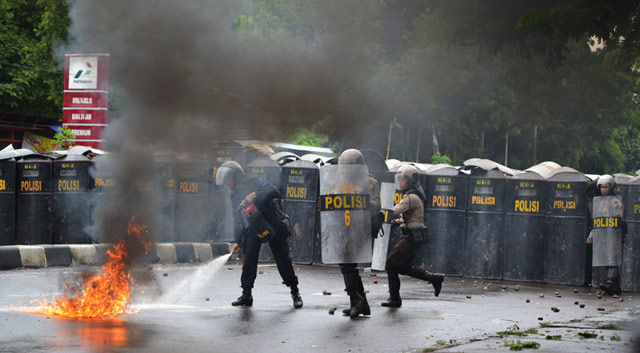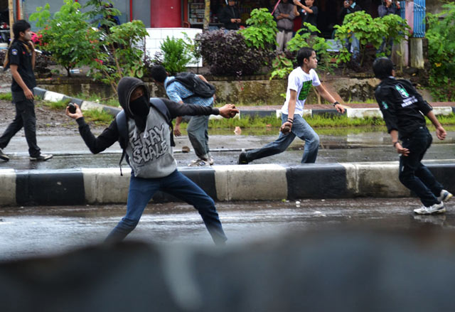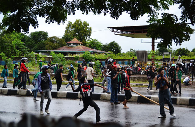 Seratusan mahasiswa Universitas Muslim Indonesia terlibat perang batu dengan ratusan aparat dari Samapta dan Brimob Polda Sulselbar, saat menggelar unjuk rasa Anarkis & Tragis berkaitan Hari Anti Korupsi se-Dunia yang jatuh pada hari ini, kamis (9/12). Sejumlah korban berjatuhan dari kedua pihak.Innalillahiwainnailaihirajiun...!!!